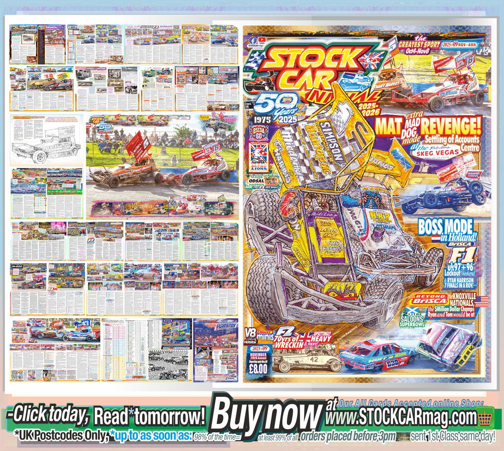 •F2 from October 4 •V8 Hotstox New and two-time V8#1 roof Thomas Brighton tells what went wrong and what he did on the run the Gold. •NMSC minis and •F1meets 39-45 with a back page SO Finale basics, F1 Grades and more! £11.29 by post; buy now, read as soon as tomorrow* via the STOCKCARmag.com online shop