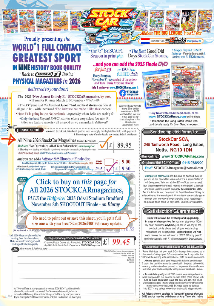 All Nine 2026 (51st Year) STOCKCARmagazines by Post to any UK postcode PLUS! our 2025disc11: Bradford's November 8 Shootout Finale on halfprice, 2hour, full HD BLURAY
