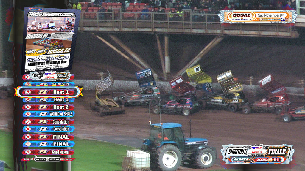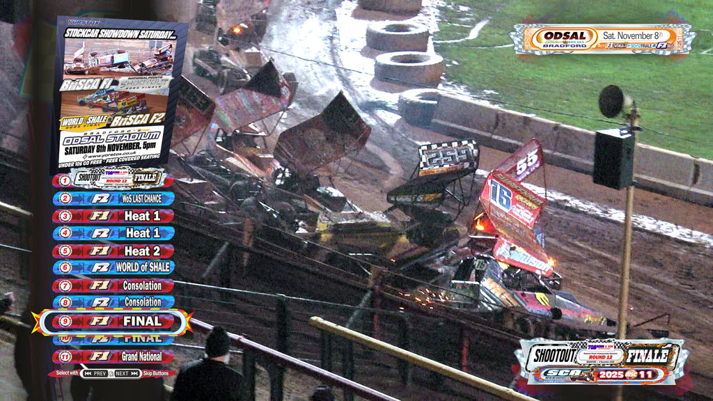 SCArecordings 2025 disc 11; Sat. 8th November, ODSAL STADIUM Bradford, the 2025 SHOOTOUT FINALE and F2 World of Shale night on regular DVD disc: